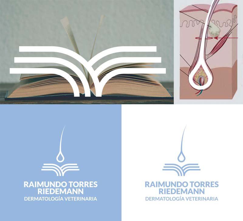 Se diseñó un símbolo basado en la imagen de un libro abierto, utilizado como ícono del conocimiento y la educación. La figura del pelo se integra al símbolo, funcionando tanto como referencia directa a la especialidad dermatológica como una metáfora visual: el libro abierto puede interpretarse como el cabello de un mamífero separado para observar la piel del animal. Esta doble lectura refuerza el carácter profesional y didáctico de la marca.